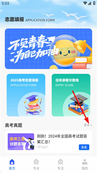 1、进入智学课堂在线后,点击高考真题旁的更多选项,可进入高考真题列表页面。