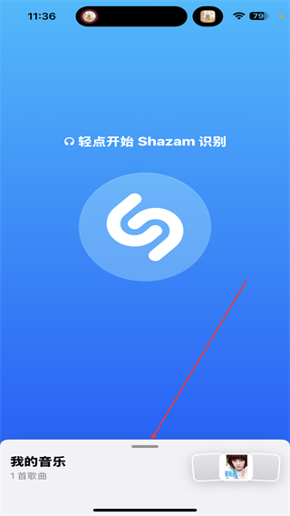 1、点击软件中间的图标就能识别音乐资源的内容,长按图标就能开始自动识别;