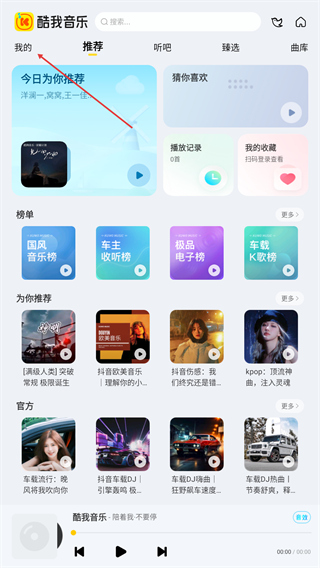 1、推荐:软件在这个功能里面为用户推荐了大量的各种榜单上面的歌曲,包含了抖音热歌版以及酷我飙升榜等;