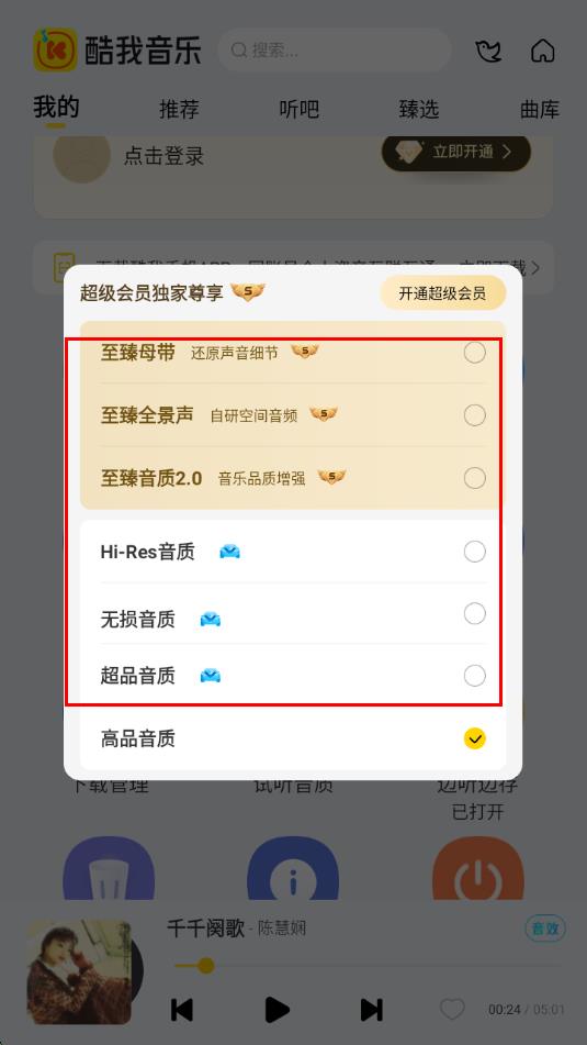 酷我音乐怎么更改音质设置