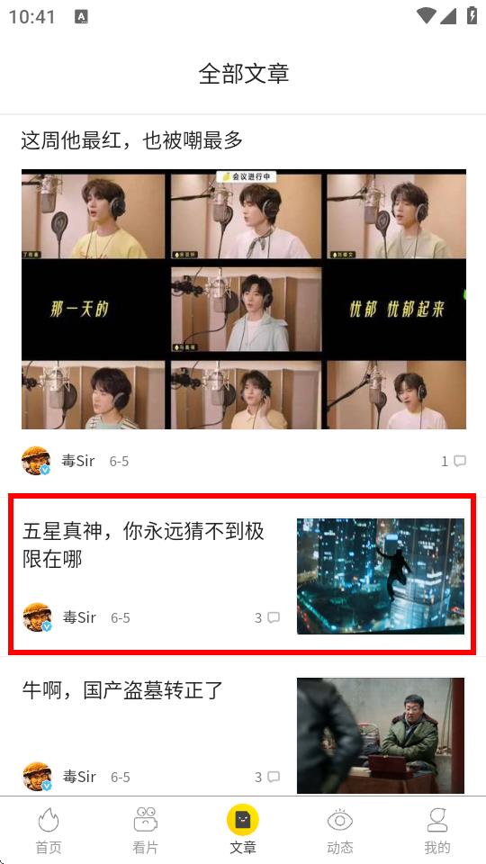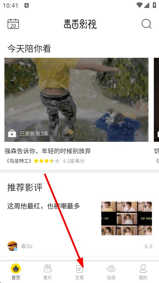 1、打开毒舌影视APP,点击底部导航栏中的文章选项,进入全部文章页面。