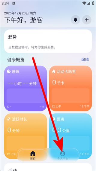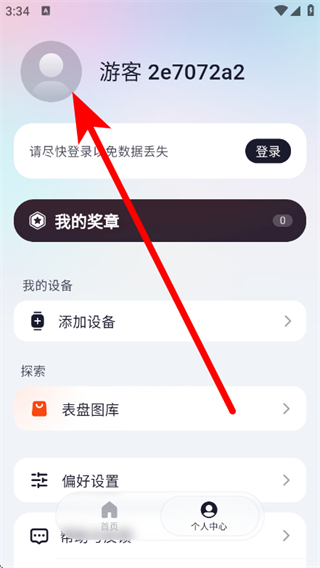 2、在个人中心页面,点击游客区域,进入登录页面。