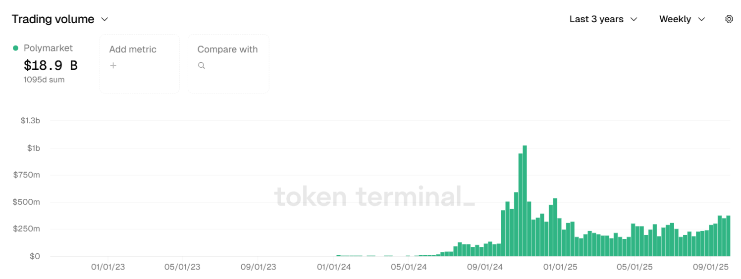 tokentermina 最新数据显示,其总成交额已升至 189 亿美元,大幅领先于另一个竞争对手 Kalshi。