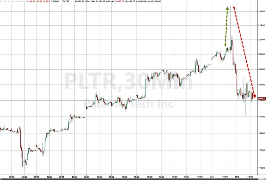 具体来看,两大事件直接引爆了对散户热门股的抛售。首先是 Palantir 的财报引发了对其增长前景的担忧。