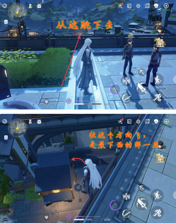 2、然后视角往左侧转,从边上跳下去,之后往这个方向飞,是到最下面的那一层;