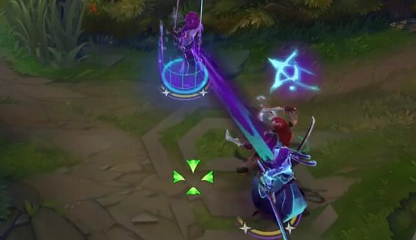 永恩皮肤一眼看上去有一点这姿势和发色看上去有点骚,说是卡特琳娜也不过分吧?永恩在设定里应该是那种全能型的高冷角色,在学院里化身万人迷