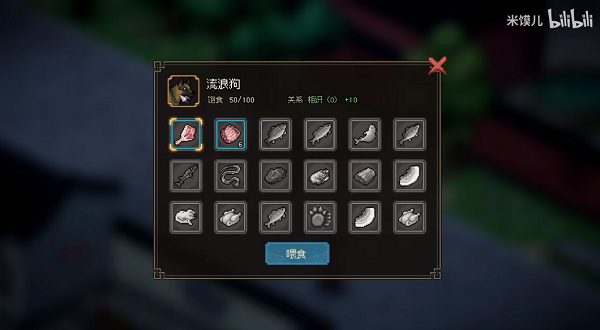 驯兽能力≥2级可交互,喂食肉食(除狗肉、狼肉外),与其关系达到知己后可领养。