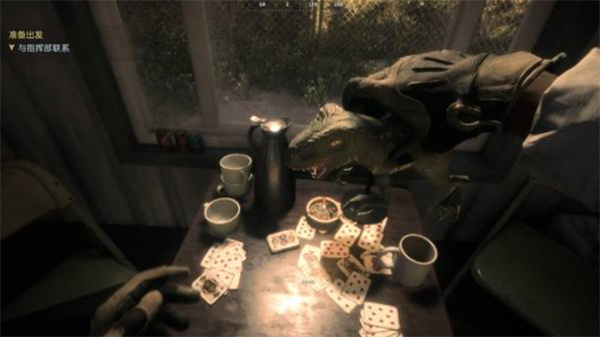 2、开局后不要急着前进,直接转身回头,在你身后的桌子上可以看到一个小型恐龙雕像。