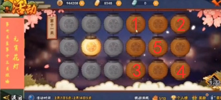 5.最后一个点亮第二排第五个位置的花灯,一定要按顺序点亮哟。