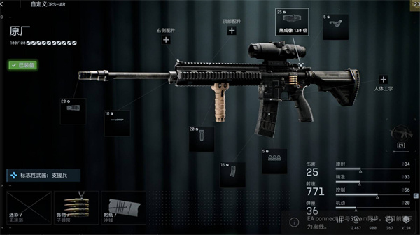 配装完成后的DRS-IAR射击稳定、机动性高,支援兵使用时几乎没有传统机枪的笨重感。