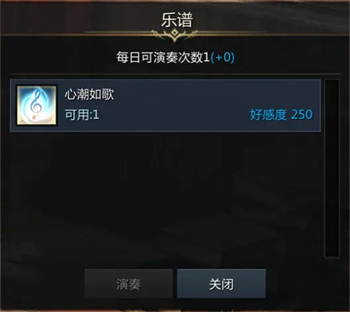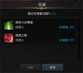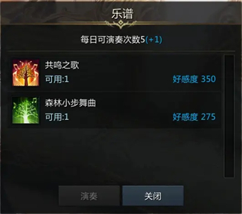 乐谱喜好:共鸣之歌,好感度+350、,好感度+275