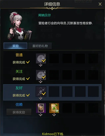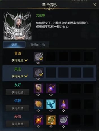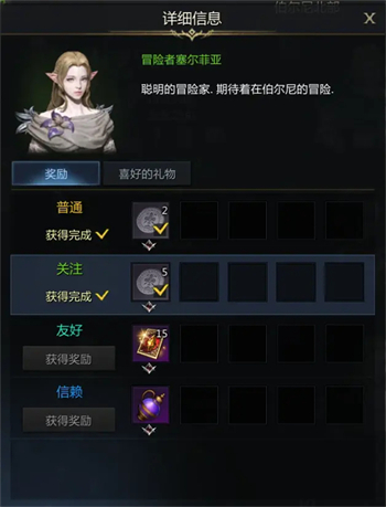 喜欢的礼物:阿尔忒弥斯圣水+450,该物品可以在阿尔忒弥斯流浪商人与领地商人处购买获得;
