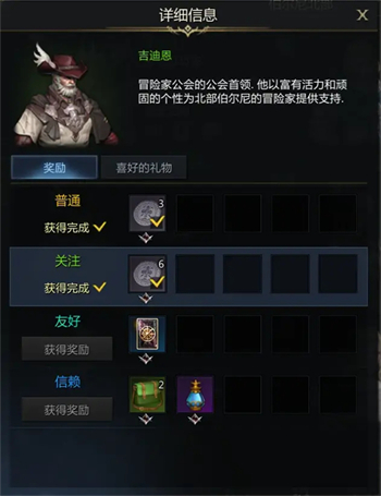 喜欢的礼物:魔法布料+450,该道具可以在伯尔尼北部的流浪商人以及领地商人处购买获得;