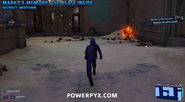 *马尔科的回忆是一种橙色晶体,靠近会产生一波波沙人敌人,按△键拿起晶体,然后按L2+R2打碎水晶,瞄准水晶后按○键收起。