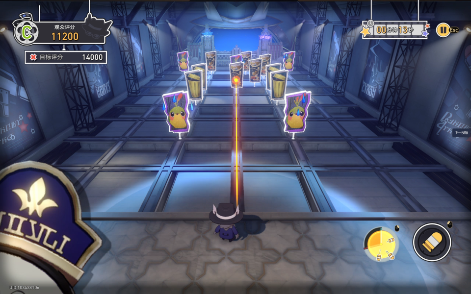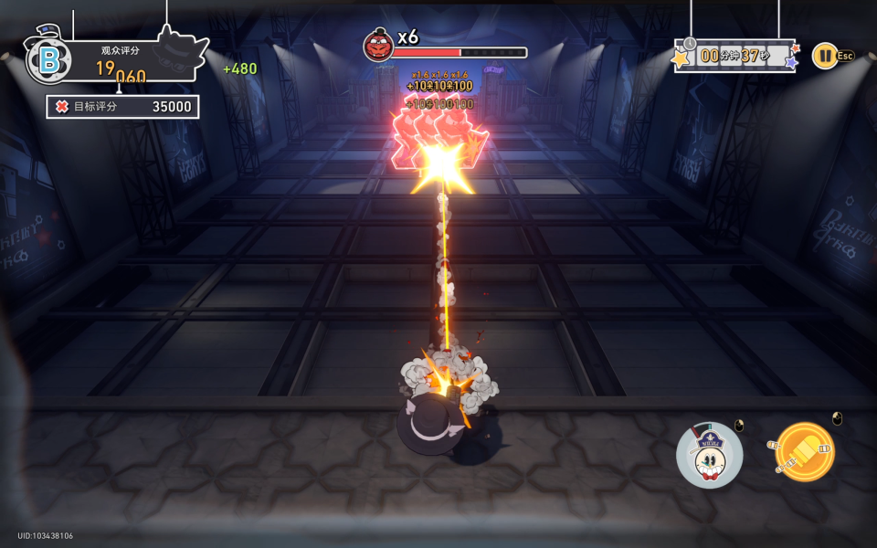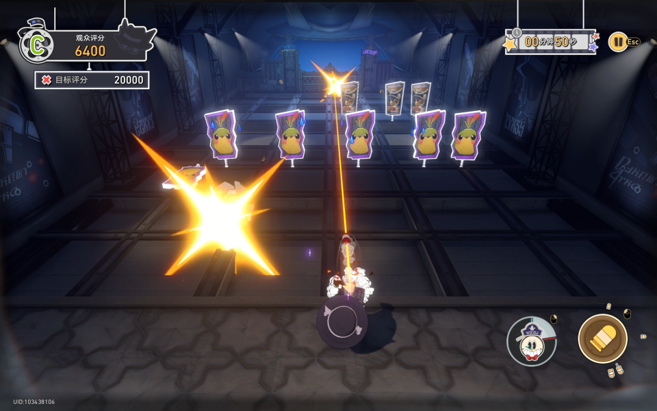 这点在打底关中尤为重要,如下图,在最后时刻,boss会召唤两个分身(共三个),此时使用子弹时间,将它们定在一起,然后持续攻击,会非常有效率的击杀boss。