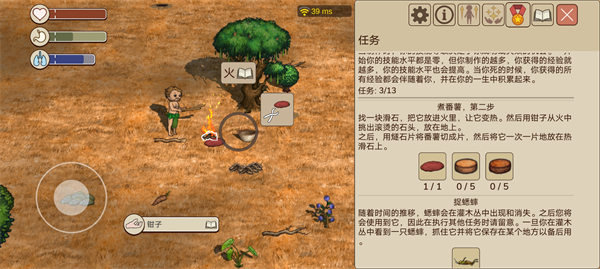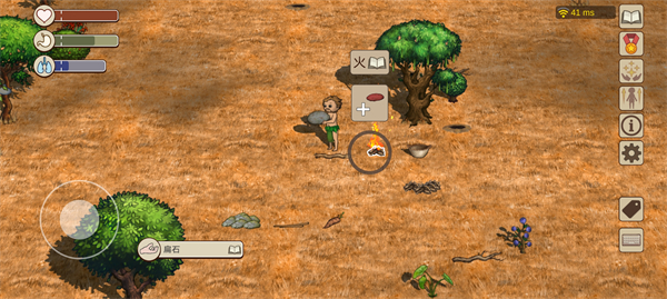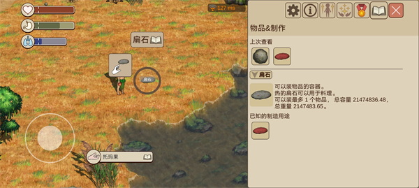 2、在地图上找到一个扁石,将扁石拿到你生火的地方;