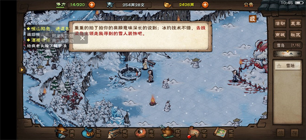 烟雨江湖是一款武侠单机类游戏,游戏中有众多的角色玩家可自行扮演,游戏采取的是回合机制,游戏中堆雪人的雪人道具怎么获得?大雪人的具体位置在哪?有的小伙伴还不知情,下面小编就给分享下大雪人具体位置。