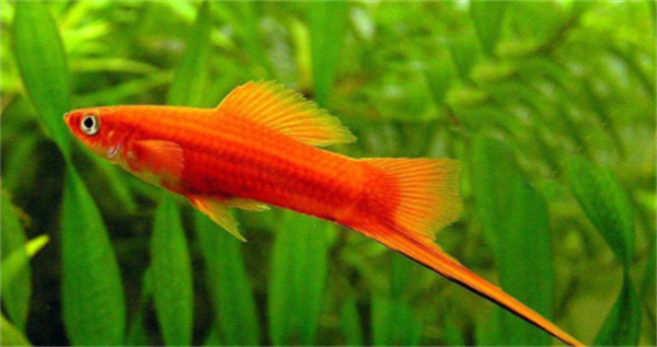 红剑鱼属于热带观赏鱼,雄鱼尾部的下叶延长成剑状,游动时犹如舞剑,因此得名“剑鱼”。这种特征不仅是它的标志性外观,也是吸引雌鱼的重要特征。红剑鱼体色鲜艳、性情温和,常见于家庭水族箱中。