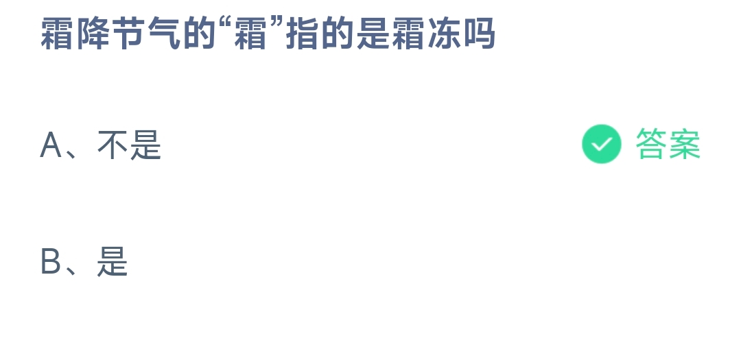 霜降节气的“霜”指的是霜冻吗,支付宝小鸡庄园10月23日正确的答题答案是什么,有很多小伙伴可能想知道蚂蚁庄园免费小鸡饲料霜降节气的“霜”指的是霜冻吗问题的答案