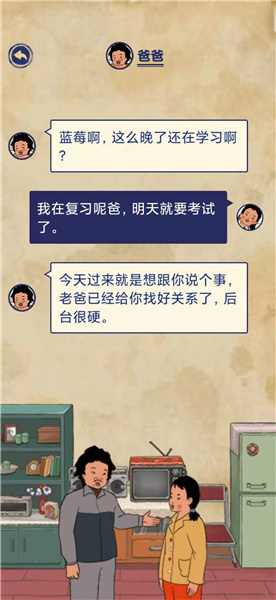 爸爸:今天过来就是想跟你说个事,老爸已经给你找好关系了,后台很硬。