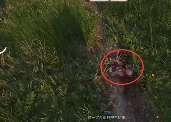 前往任务指定的地点,找到被狼群袭击的羊的尸体。调查羊的尸体,让狗狗闻羊的残骸,以便追踪狼群的踪迹。