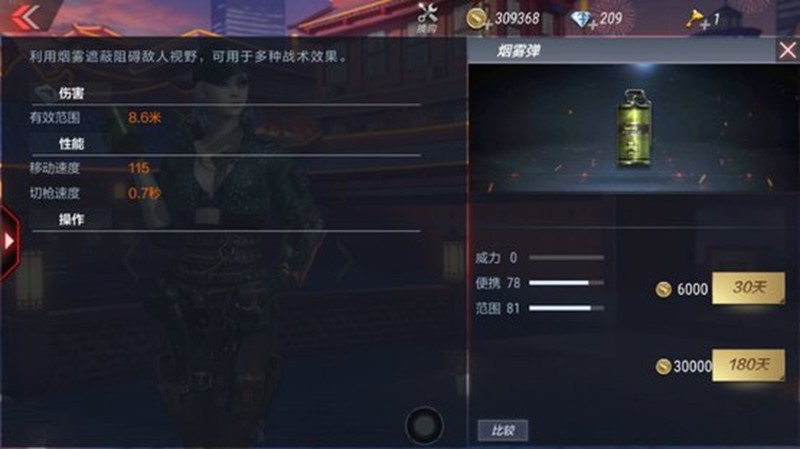 目前有红色烟雾弹和普通烟雾弹两种。普通烟雾弹价格很实惠,6000金币就能购买30天使用期限,30000金币则可获得180天的使用权。烟雾弹的主要作用是制造烟雾来遮挡敌人视线,在穿越火线枪战王者中起到掩护和突袭的战术效果。