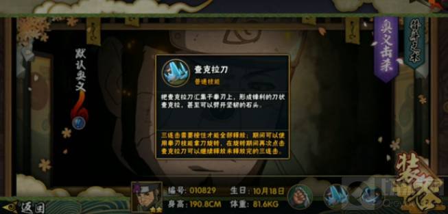 2、二技能查克拉刀。一技能可以配合二技能使用,使用二技能后,一技能改变形态建议一技能使用两次以后再按普攻可以将伤害最大化。普通状态和查克拉刃状态都可以用过方向键调整位置达到骗替身的效果。二技能是远距离攻击查克拉刃,向前砍出两条查克拉风。长按会砍出第三道查克拉,但是往往此时对手会选择替身,所以建议在第二段停止然后利用方向键回撤。