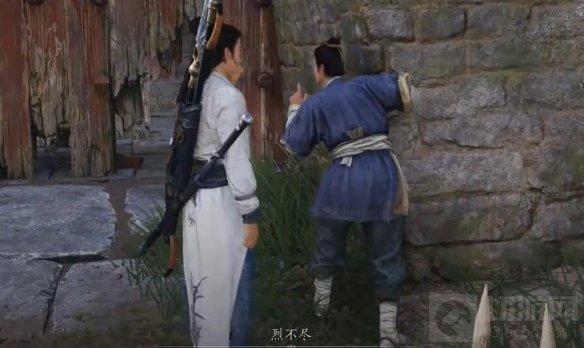与NPC烈不尽对话:到达后,找到大门口的NPC烈不尽并与之对话。