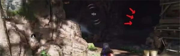 4、传送到栖鸟岩界碑,随后跳下悬崖,在下方山洞内找到陈木。