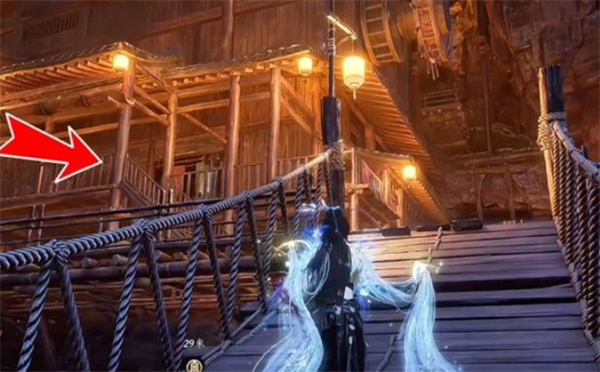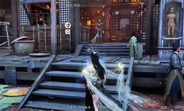 7、传送至「易墨坊界碑」,通过绳索攀爬至房顶,找到有木人偶的店铺,偷听NPC成欢对话,使用奇术获取密信
