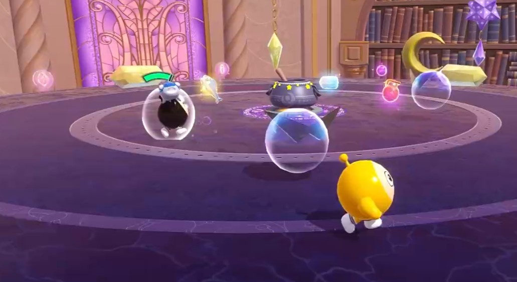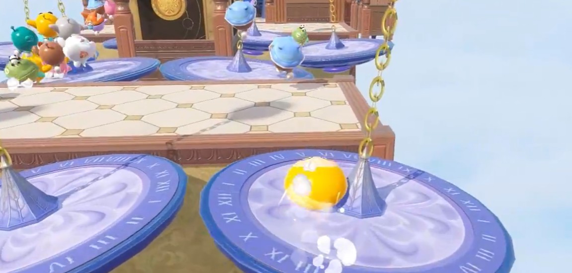 在"魔法的坩埚"中,中央的巨大坩埚会周期性向四周发射魔法弹,落地后随机生成追逐玩家的动态机关。面对这种不可预测的威胁,灵活走位成为生存的关键,稍有不慎便可能陷入连续受击的困境,影响最终排名。"升降危机"的挑战则集中在地形变化上——由七块潮汐地面构成的平台会随时间随机升降,玩家必须迅速判断安全区域,并结合周围道具完成稳定移动,才能在混乱中脱颖而出。