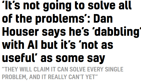 不过Dan Houser也表示虽然AI企业都乐于让更多工作室看到AI的优势,但是实际情况是真正有用的东西并没有多少,AI根本不可能解决所有的问题。