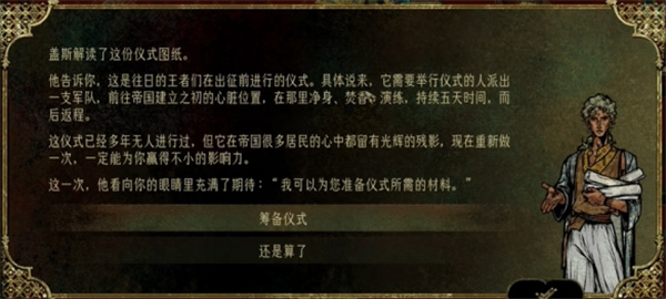 9、自动触发盖斯会卖掉祖产筹钱,选我想要,后面会有事件不限时,给钱就好,会获得"古老的戒指",他升金后会有把戒指赎回去的事件。