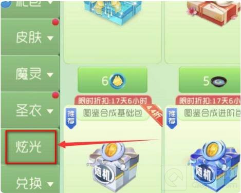 4. 在魔法屋界面左侧菜单栏中找到"炫光"功能按钮,这是龙蛋的主要消耗场景。