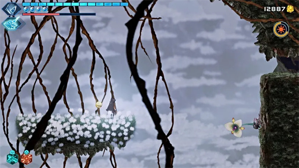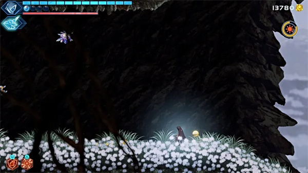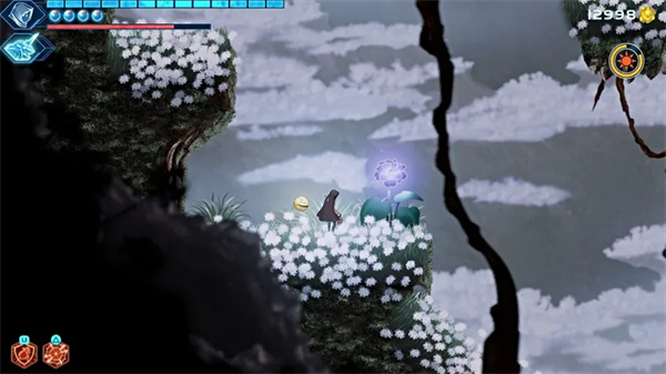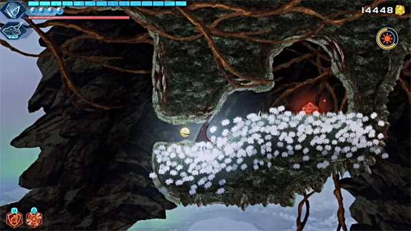 继续向左走,爬上上面的壁架到达另一个物品水晶,在那里你可以获得另一块闪闪发光的石头。