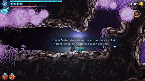 再次出发,在你获得第一个盖亚材料的同一个山谷部分,你还可以在右侧的壁架上找到一块闪闪发光的石头。
