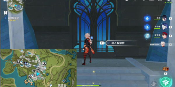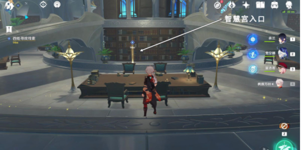 3.进入智慧宫电梯背面的书架区域,再次与派蒙对话推进剧情。
