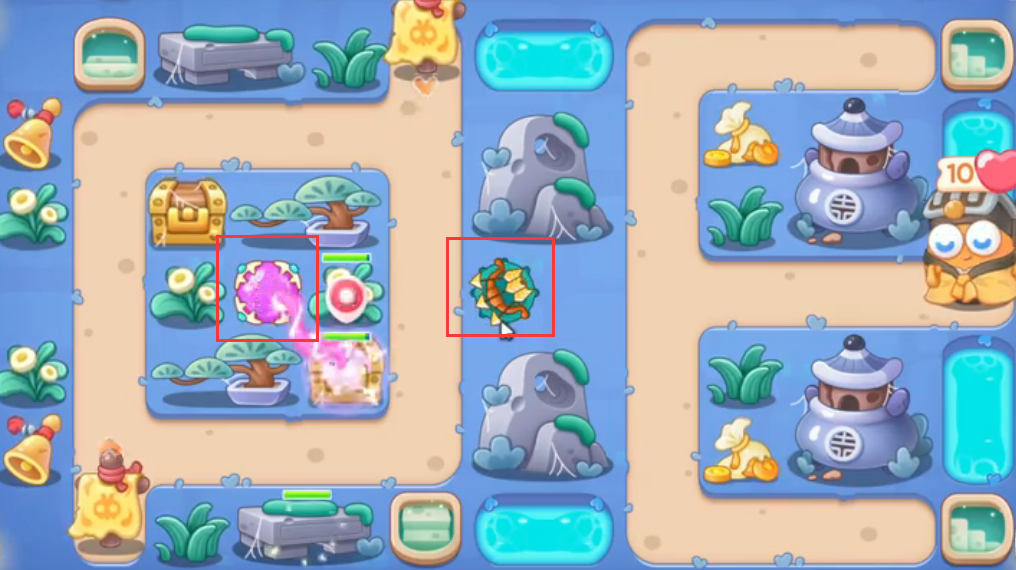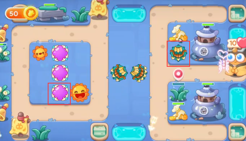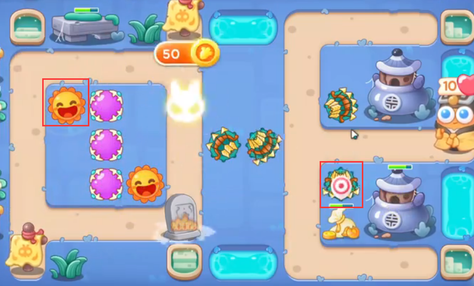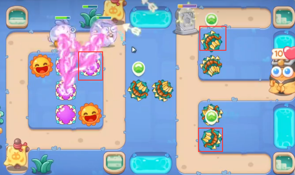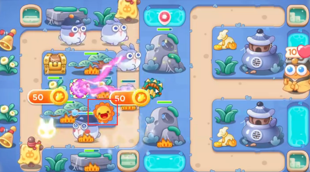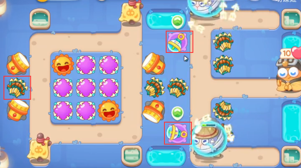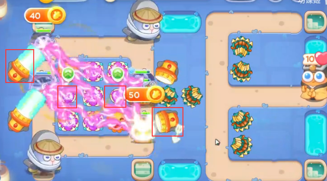 第四波开始利用宝箱资源,将开出的太阳塔立即升级。此时应形成以多重箭为主力、魔法球辅助、太阳塔控场的立体防御体系。