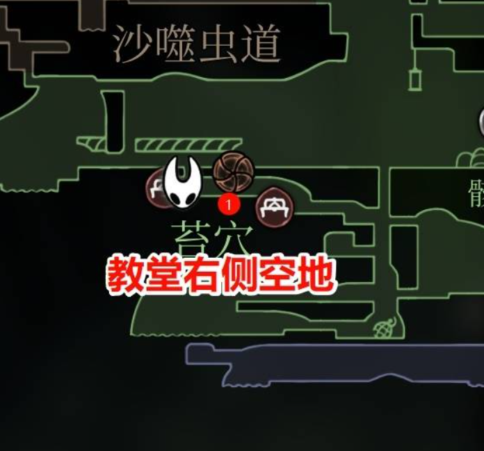 1.圣堂倾颓君威下:苔穴颓败教堂左上方,三蜗牛所在房间右侧空地(棕色图标所示位置)