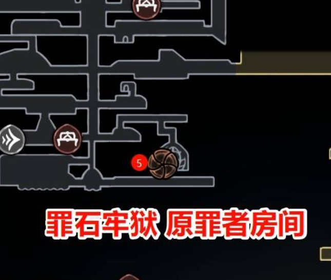 5.囚笼首罪逆丝客:罪石牢狱,关押的原罪者房间里左(棕色图标所示位置)