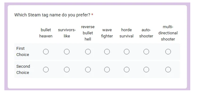 喜欢玩这个类型游戏的玩家注意了,如果V社能够接受投票结果并实装的话,今后搜索"吸幸"类游戏时更加方便了,发起者提供了多个候选标签,看看哪个更加容易第一印象好记好搜。