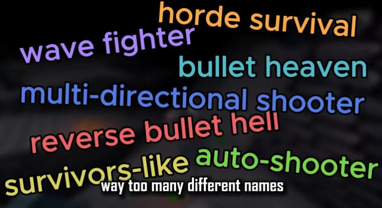 其中几个比较有热度的词条包括"survivors-like",这个直接致敬原作模仿,"Bullet Heaven"(弹幕天堂)很有游戏特色的表述,"Auto-shooter"自动射击也是游戏的重要玩法。