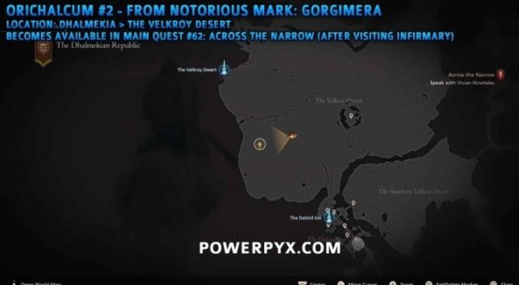 达尔梅奇亚的维尔克洛伊沙漠深处,【强化奇美拉】会交替使用冰火吐息。当其切换元素属性时,背部结晶会暴露出第二块奥利哈康的埋藏位置。