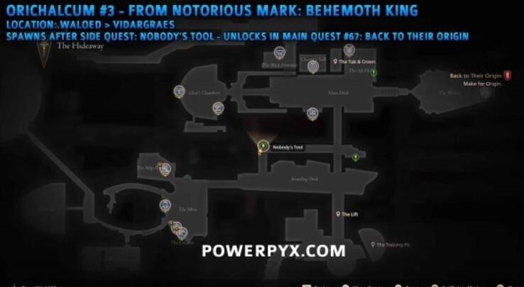 在皇国属地罗扎利亚的迷雾海岸,盘踞着机械构造体【阿特拉斯】,其核心熔炉中孕育着首块奥利哈康。建议携带雷电属性武器破坏其能量导管。