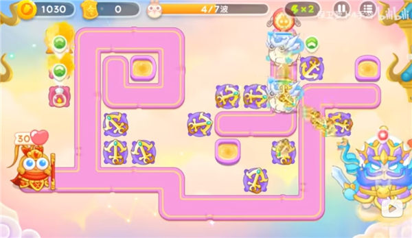 1、开局阶段在地图下方建造船锚炮塔,首要攻击目标是中央香炉。当灰兔出现时需立即切换攻击目标,这种动态调整能最大化输出效率。