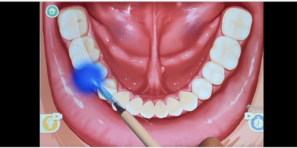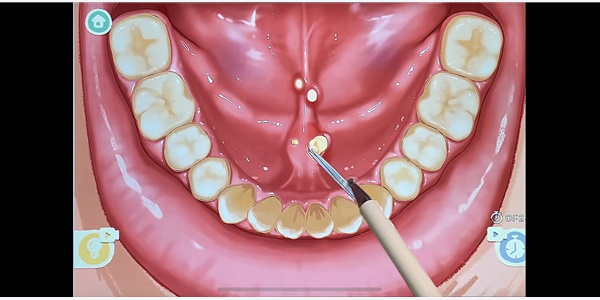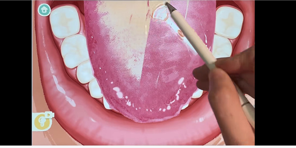 6、最后我们用工具清理舌头上细菌,完成后即可过关。专业牙医建议采用从舌根向舌尖的单方向刮拭,这个专业手法在游戏中也完全适用。