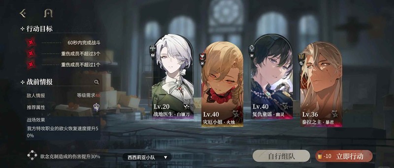⑤2-11这个刁钻关的满星配队,上一个配队很稳但是一直没办法60秒内打完,所以直接把输出等级拉高,然后把奶妈换成输出,血量非常稳定的60秒内打完了。