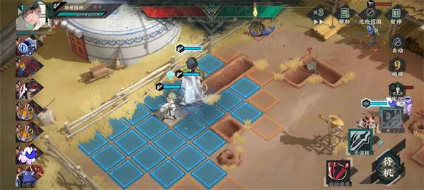 首轮战斗结束时的理想站位如下,夜行铜牌保持待机状态,仅使用职业技。关键在于把握致命一击的时机。