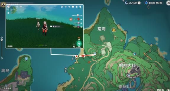 位置2:踏鞴砂北边传送点,往旁边的海滩飞过去;