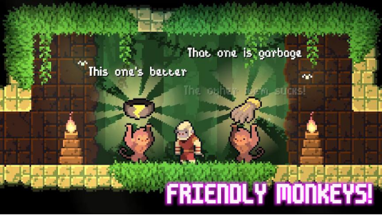 丛林地牢中,你会看到各种奇秒的像素怪物,直立面具虎,长腿走地鱼,笨蛋领主蛙等等等等。随着不断深入,地牢的环境也会彻底改变。